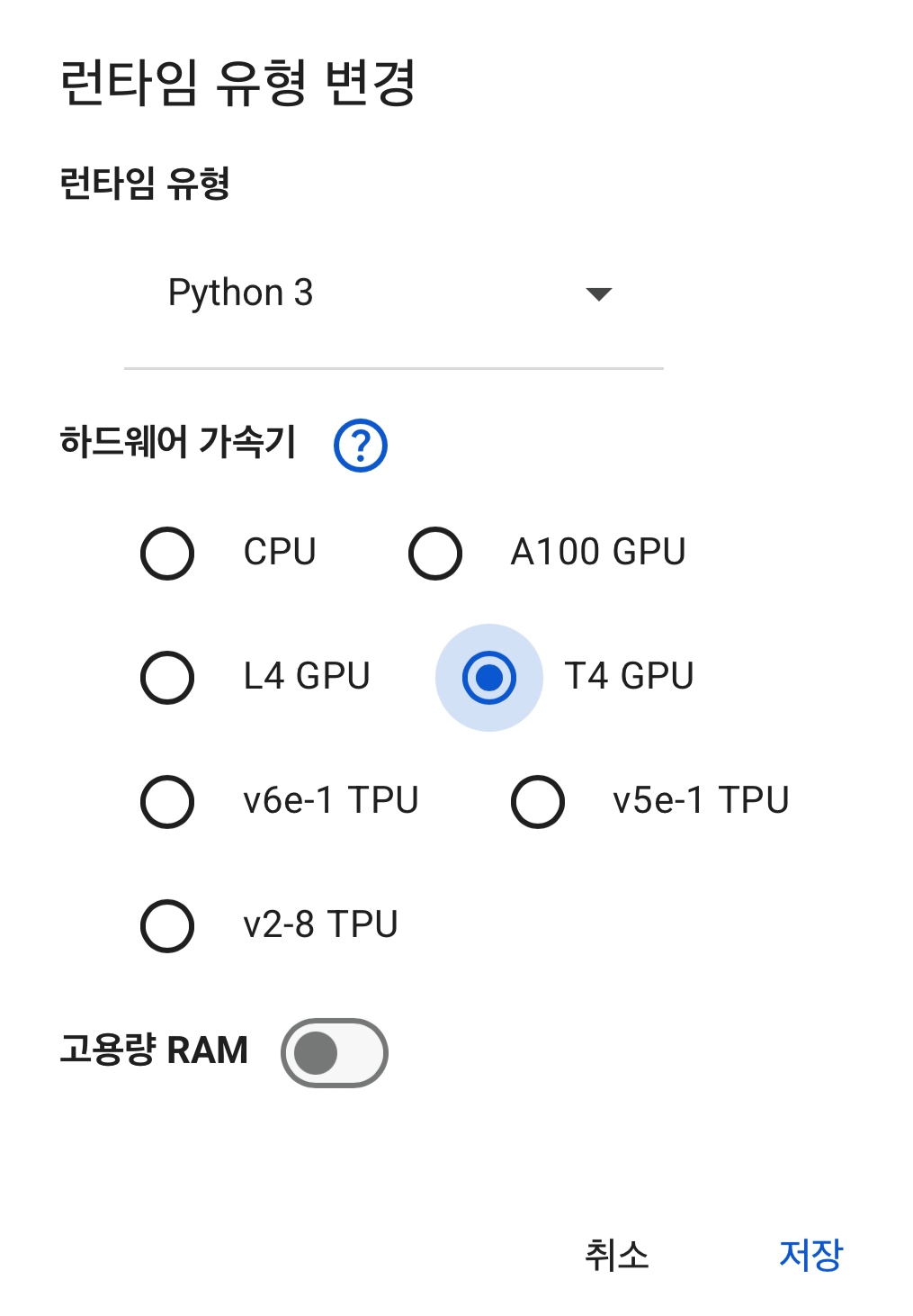 결론부터 말하자면 T4 GPU 를 선택해야 합니다.